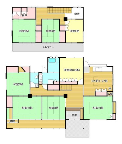 和室 10.0帖 / 和室 10.0帖 / 和室 8.0帖 / 和室 8.0帖 / 和室 8.0帖 / 和室 6.0帖 / 洋室 8.2帖 / DK 11.0帖 / 洋室 6.0帖 / S(納戸) 4.0帖 / |