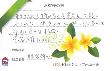 弊社でご成約いただいたお客様からのお喜びの声です